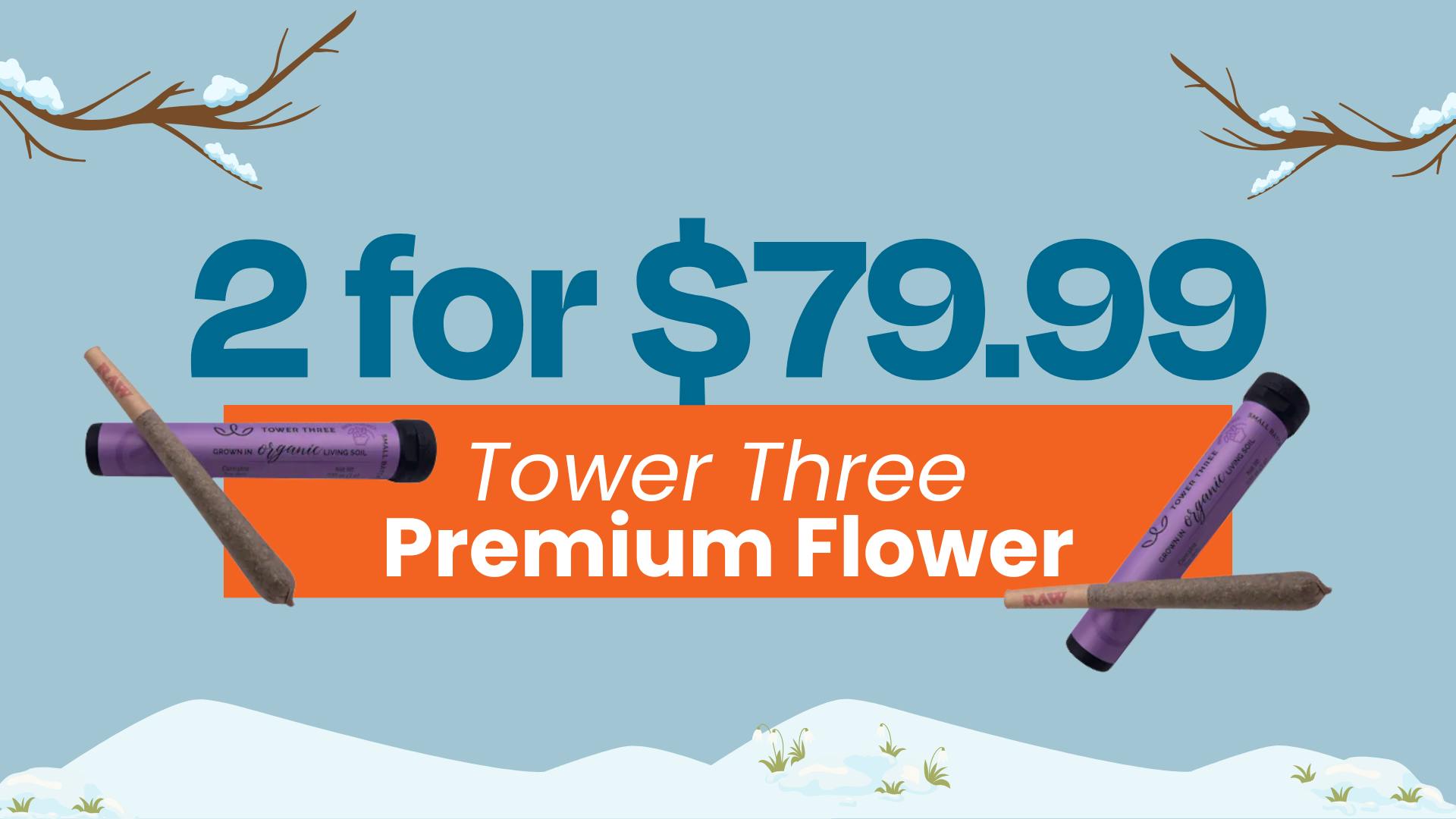 2 for $79.99 – Tower Three Premium 3.5G flower